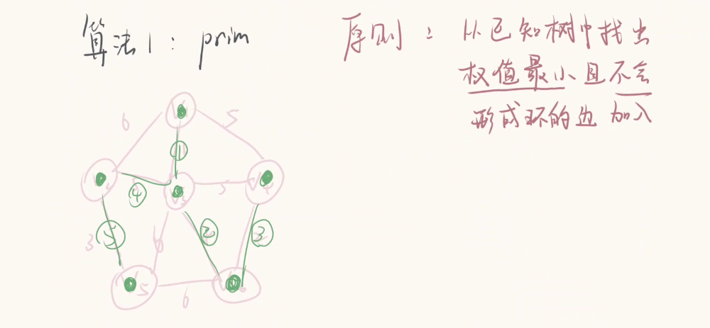 定义 所谓一个带权图的最小生成树,就是原图中边的权值最小的生成树,所谓最小是指边的权值之和小于或者等于其它生成树的边的权值之和。 算法 下边我们来看一下如何针对这个图完成最小生成树 prim kruskal 如何判断是否生成了环 这需要我们了解一下并查集相关的知识
