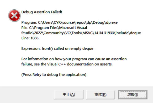 }上面提到的虚假唤醒会使得程序 crash, 因为另一个线程已经提前取走了被唤醒线程本来应该拿到的资源, 具体报错如下: