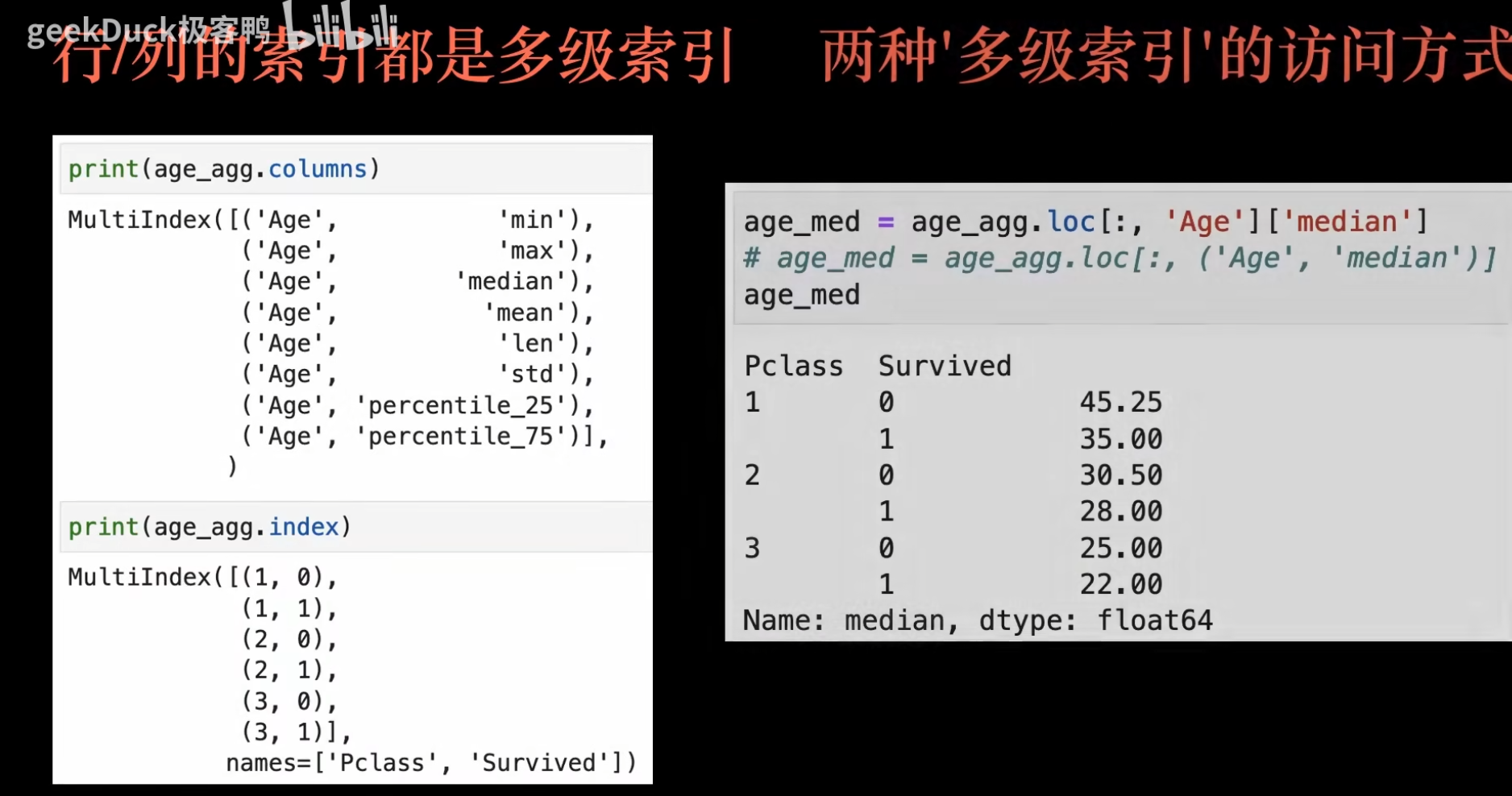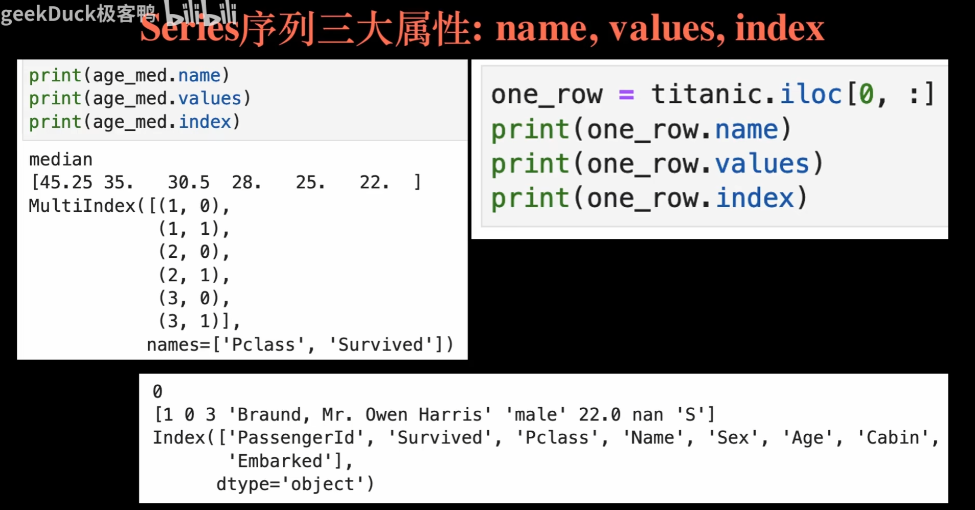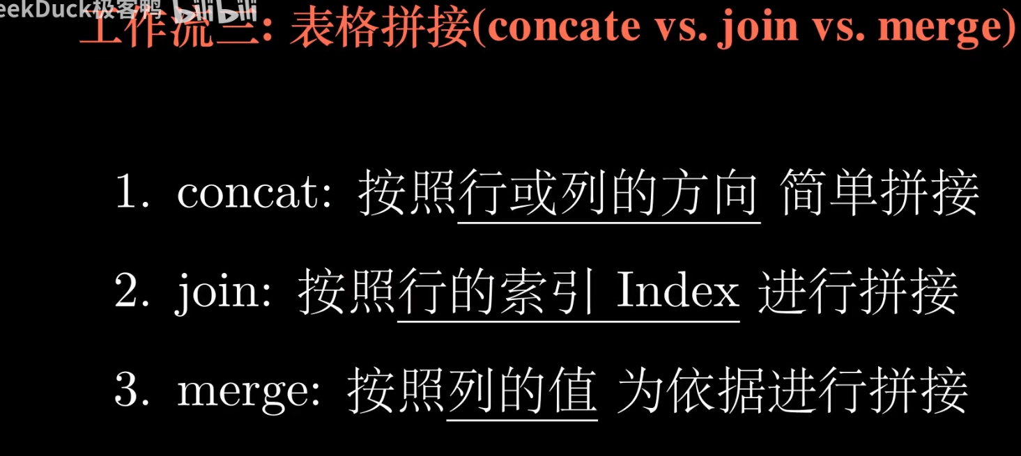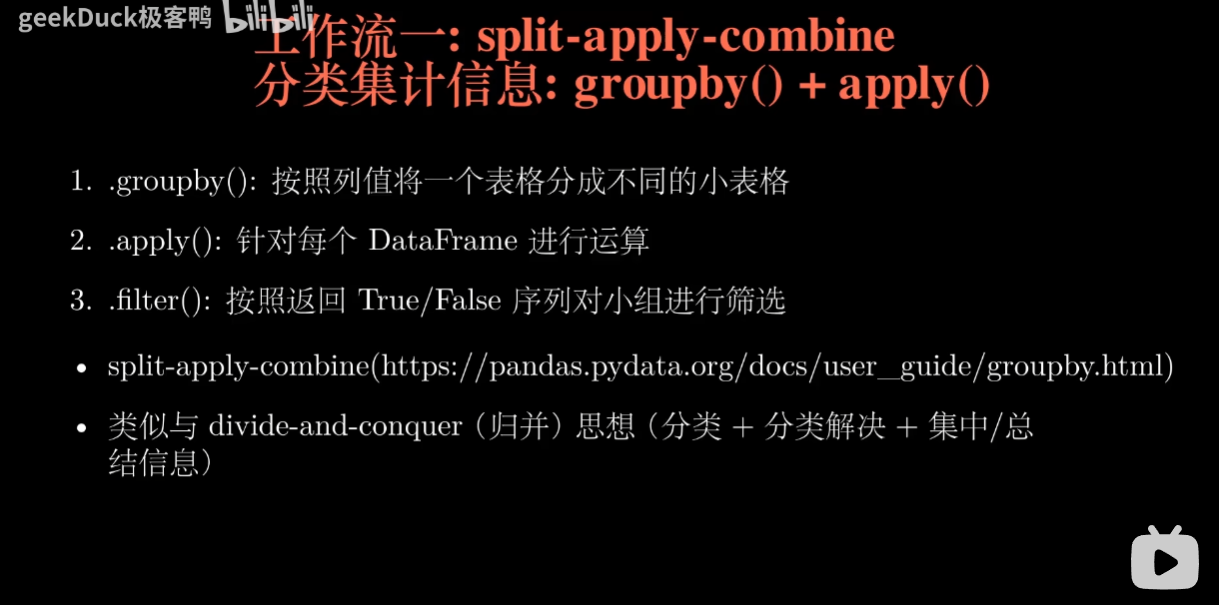备注: 这里记录一下看的 geekDuck 总结的pandas视频,方便以后查找