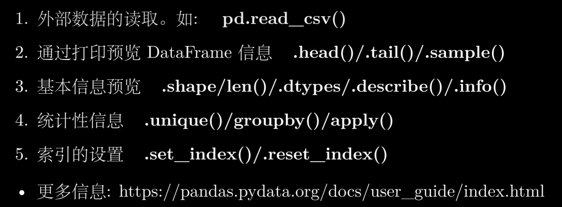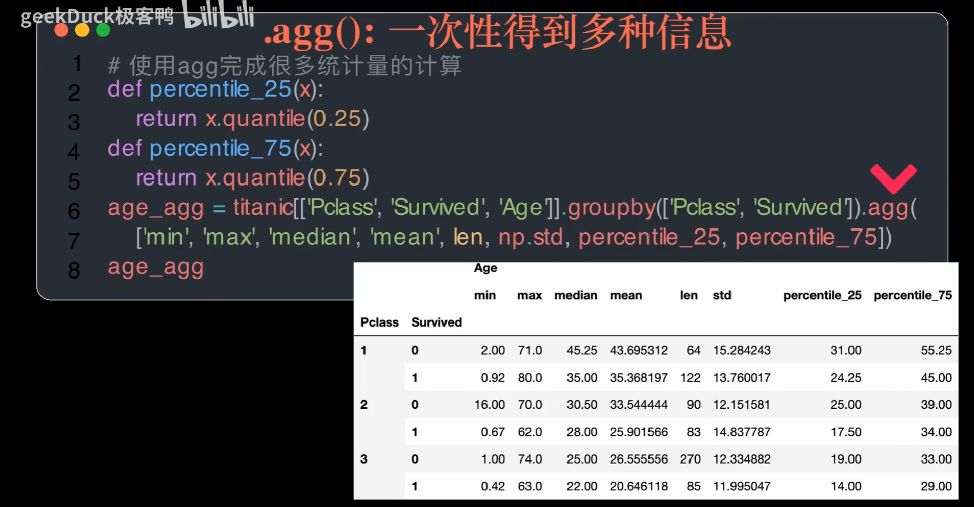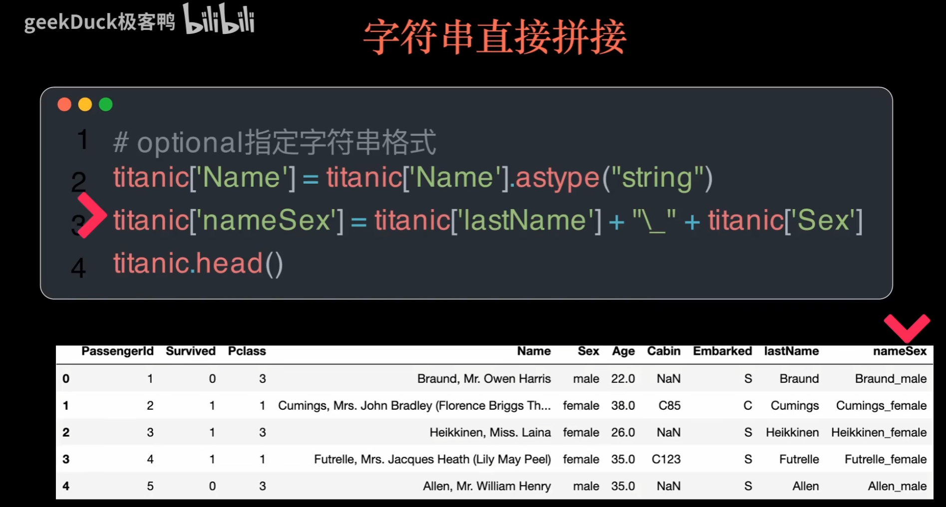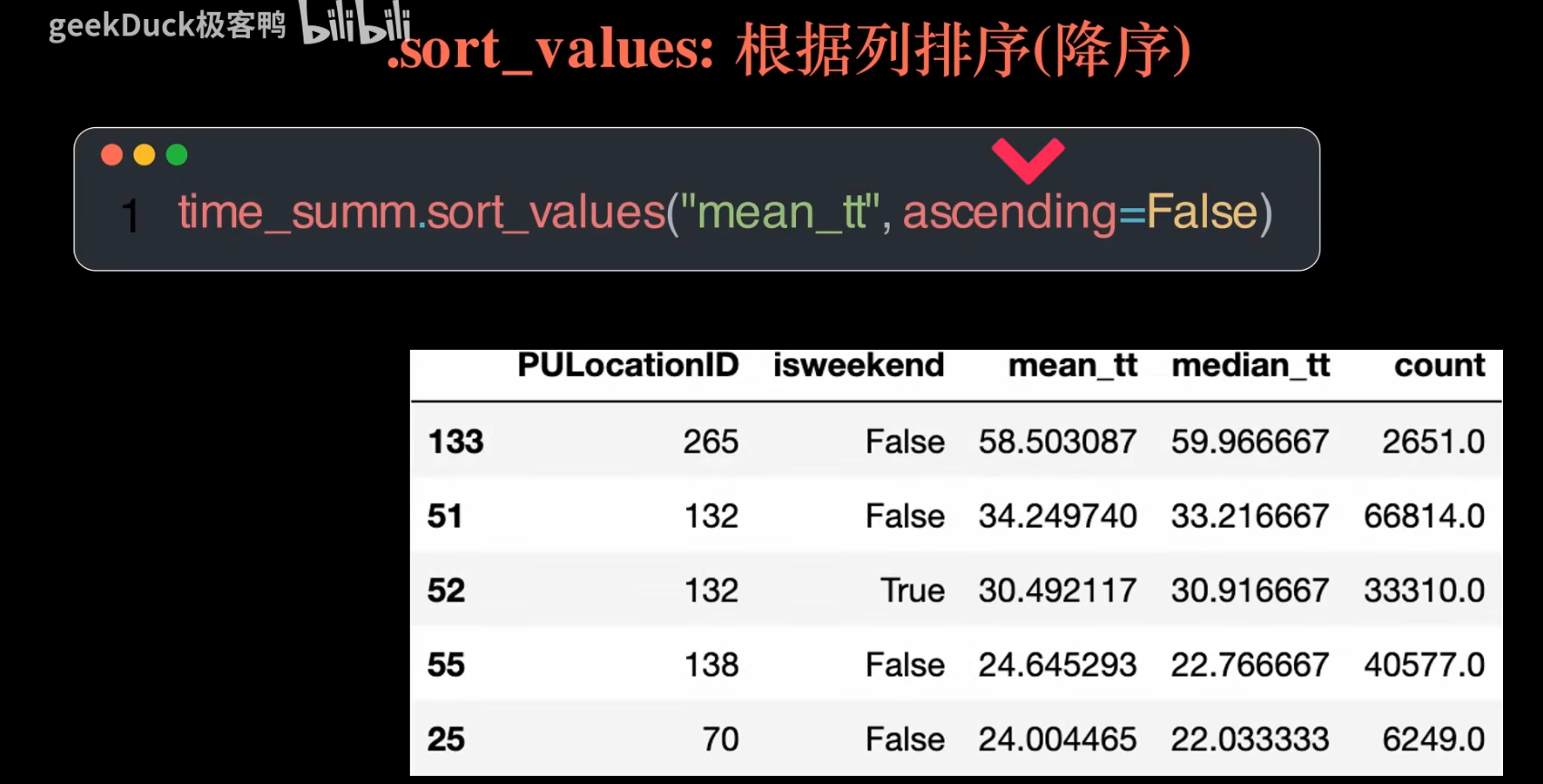 备注: 这里记录一下看的 geekDuck 总结的pandas视频,方便以后查找